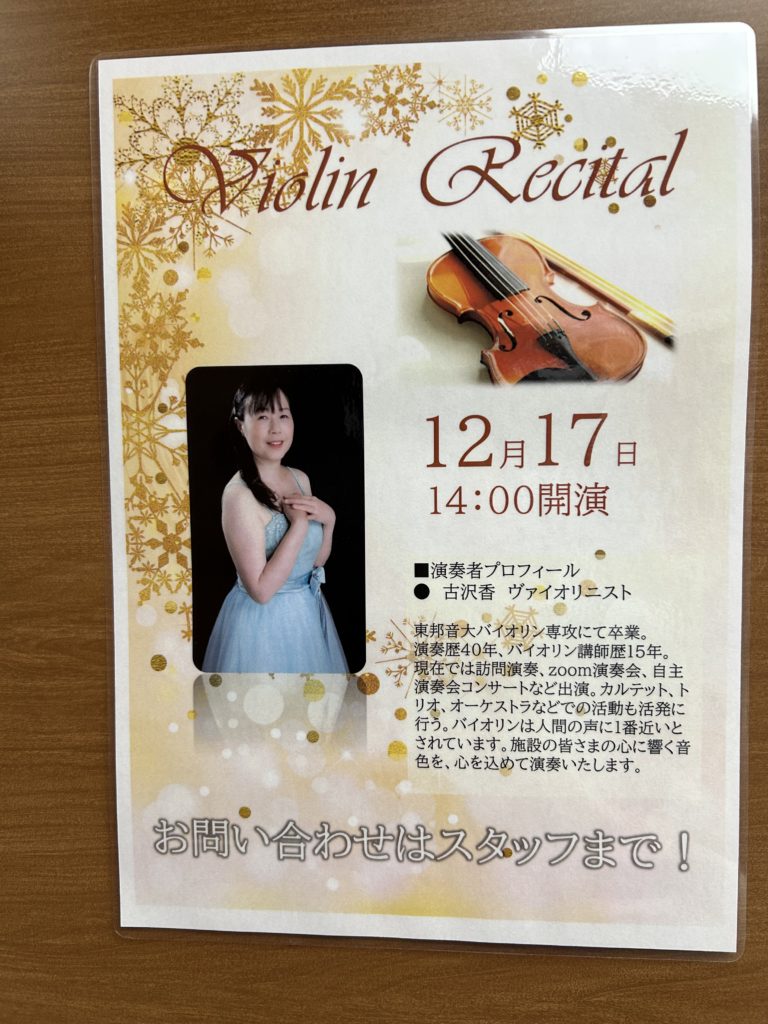 クラシック中心のプログラムでしたが、じっと耳を傾けてくださいました。