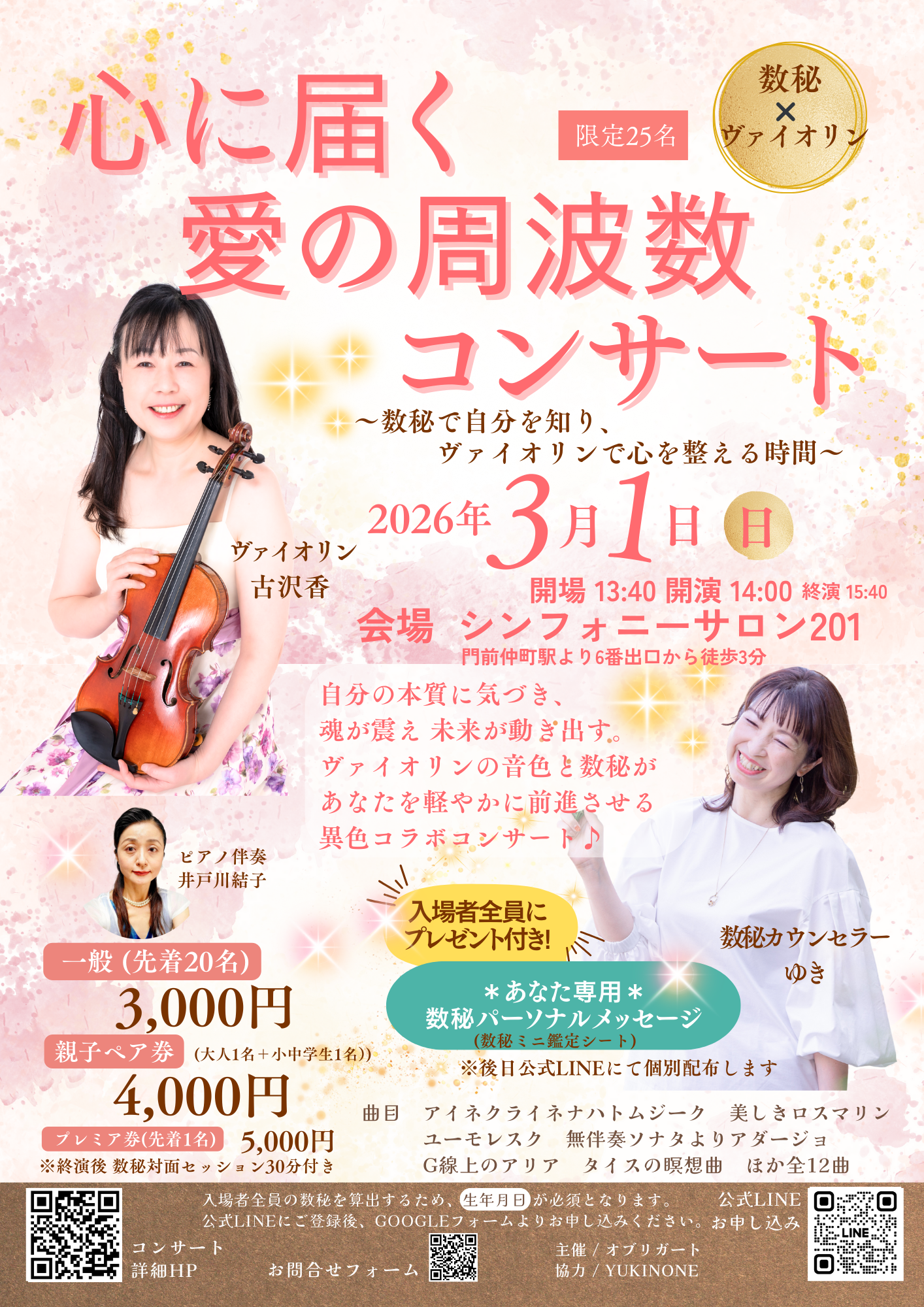 数秘✖️ヴァイオリン 心に届く愛の周波数コンサート